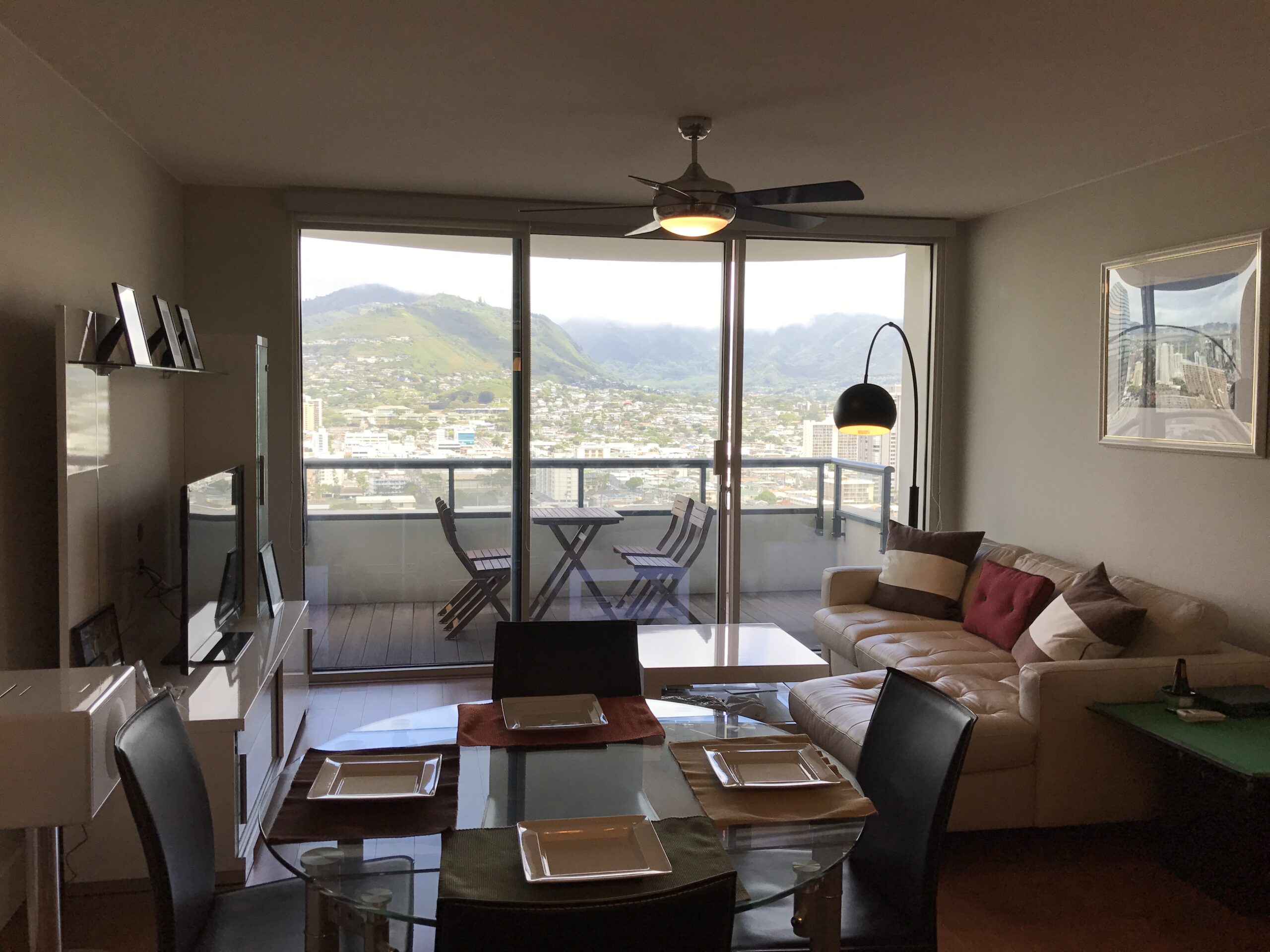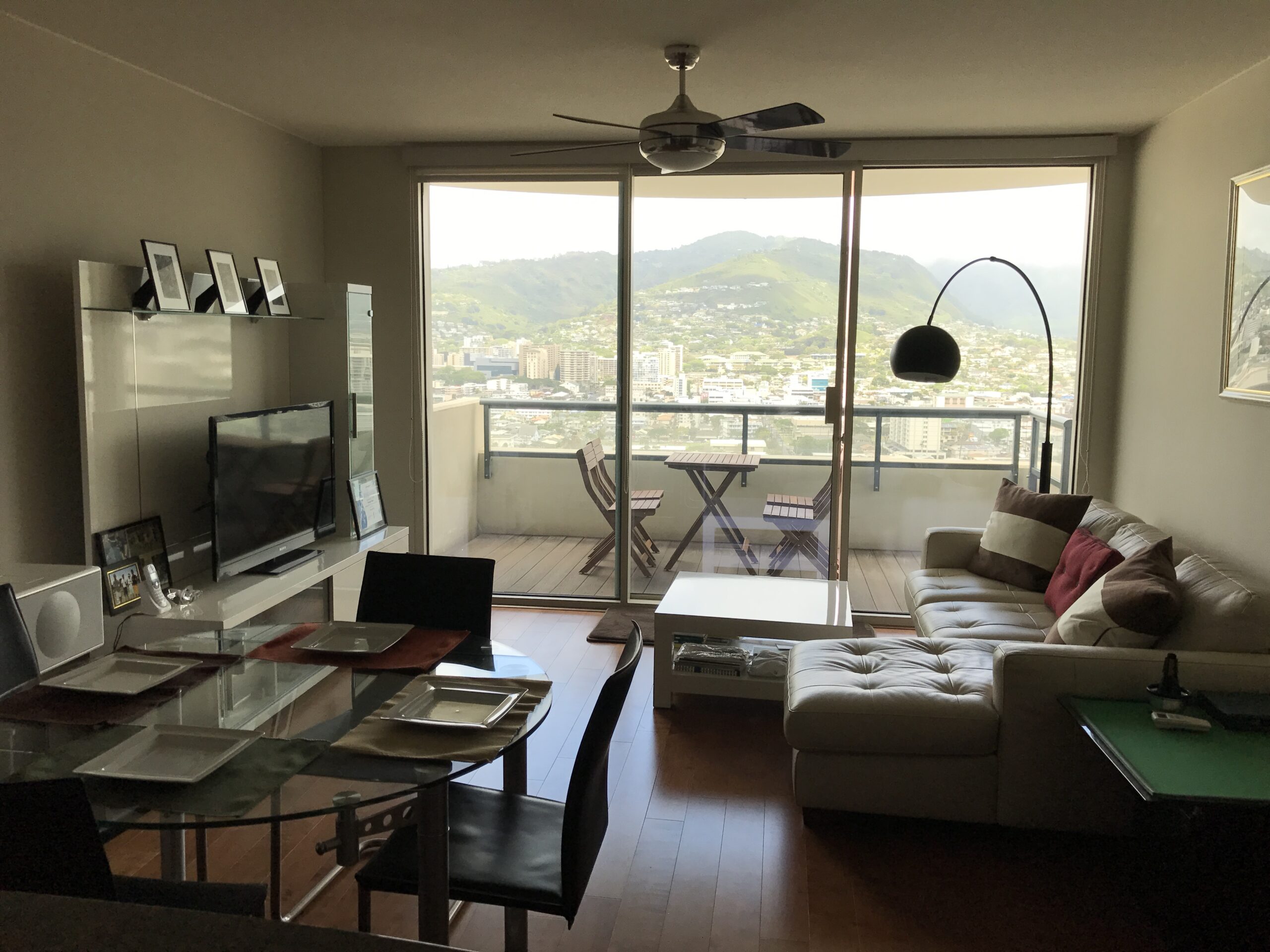 ワイキキの中心通りカラカウア通り沿いに在る2ベッドルームのコンドミニアム。