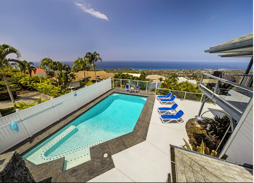 ビーチから3kmのカイルアコナの小高い丘に有るオーシャンビューのファミリー向けの邸宅。