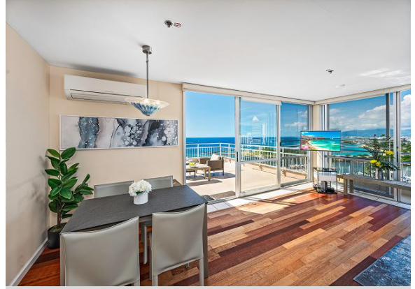 360度のパノラマヴューのリビングルームはテレワークにお勧めのコンドミニアムです。