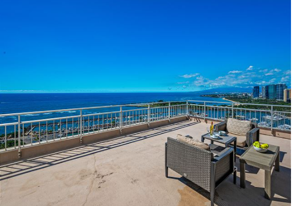 フルキッチンの台所、乾燥機付きの洗濯機、広いラナイでのサンセットの景色、毎週金曜日のヒルトンハワイアンヴィレッジの花火には特等席のラナイです。