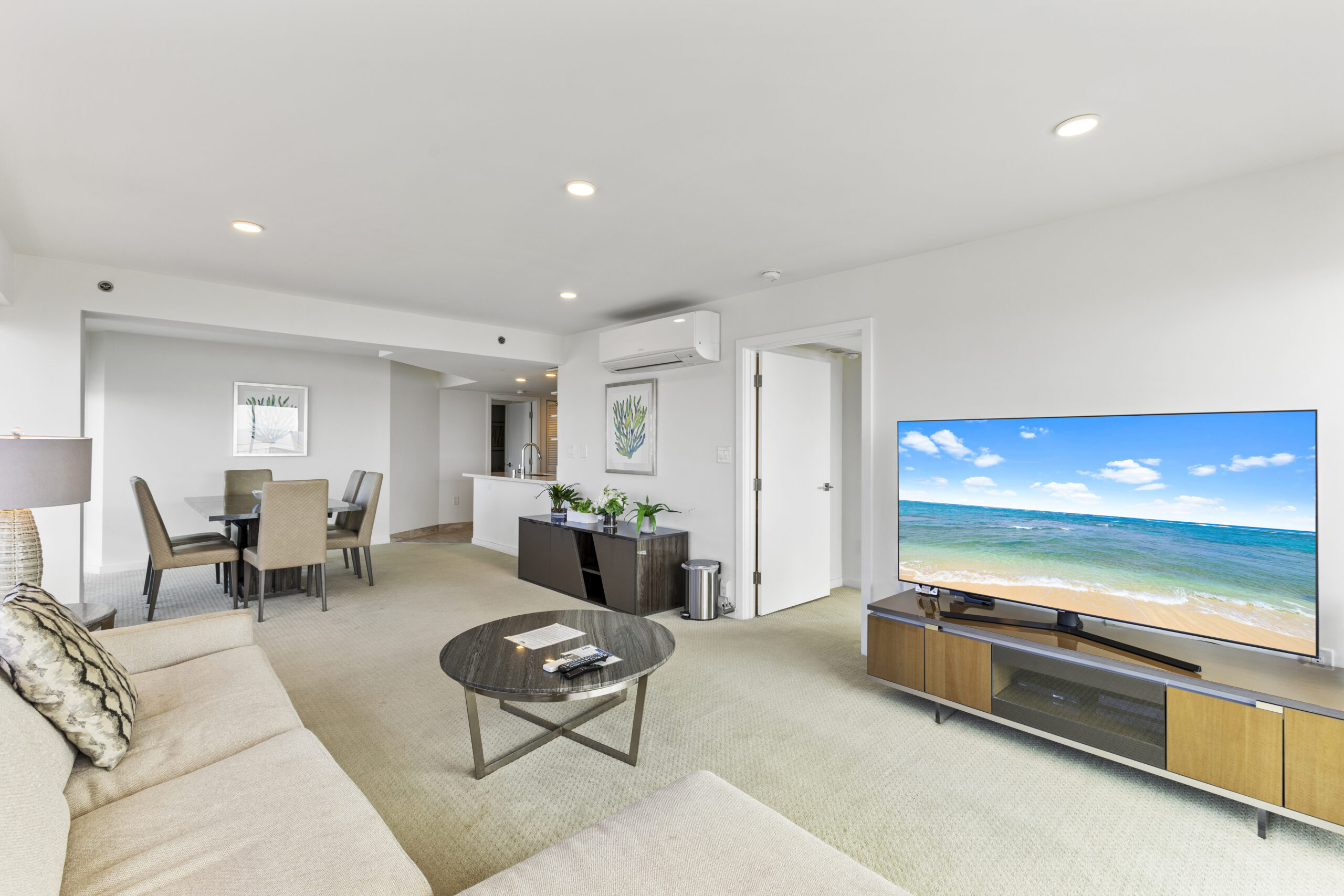 プレミアムな2ベッドルームのユニットは最高の眺望が楽しめます。 イリカイでは少ない室内に洗濯機と乾燥機が設置されており、大変便利です。 すべてが新しく、キッチン、バスルーム、フローリング、デザイナーズ家具などは2021年4月に新品になりました。 イリカイで最も人気のある場所に位置し、建物内からは最高のオーシャン、ビーチ、サンセット、花火の景色を楽しむことができます。