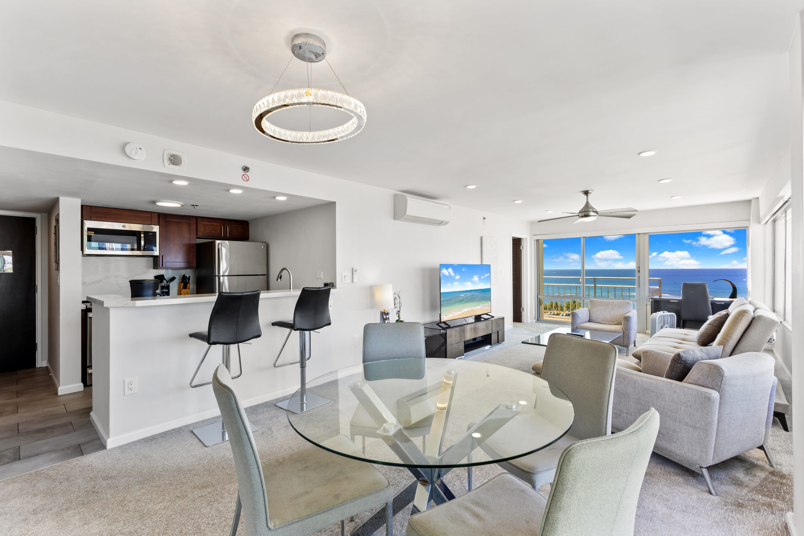 この2ベッドルームのユニットは、イリカイで最高のロケーションに位置しプレミアムな絶景をお楽しみいただけます。 フルリノベーションが行われ、キッチン、バスルーム、フローリング、エアコン、デザイナーズ家具など、全てが新品でモダンなデザインです。 イリカイで最も人気のある位置にあり、ビーチ、オーシャン、サンセット、花火の美しい景色を楽しむことができます。 目の前の青い海のサーファーを見ながらハワイのバケーションを満喫したい方には最適です。