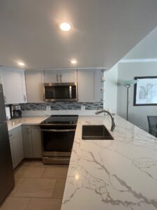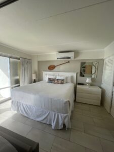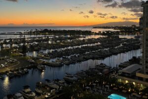 ホノルル・イリカイのこちらはハーバービューのお部屋です。同じ建物内にホテルとバケーションレンタルのお部屋が混在しています。バケーションレンタルはそれぞれのお部屋によってインテリアやリノベーションの度合いが違いますが、ハワイアンスカイでは一定のレベル以上の快適なご滞在ができるお部屋のみを手配いたします。事前にお部屋番号もわかりますので、ビューや設備も確認可能なのがバケーションレンタルの良いところ。ハーバーを見ながらラナイでまったりするだけでもハワイに浸れます。
