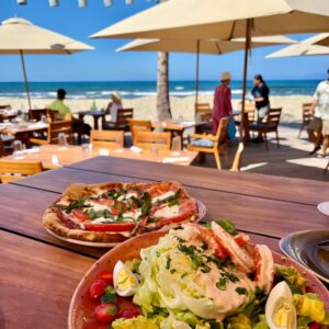 敷居が高いホテルと思いきや、ロビーは風が吹き抜けるような造りで居心地の良いソファーが置いてあり、宿泊客でなくてもWELCOMEは雰囲気。大きなプールサイドにはゆっくりとくつろぐゲストがちらほら。ハンモックがかかるガーデンやビーチ沿いを歩いていくと、オーシャンフロントのレストランBeach TREEがあります。ここは水着のままでも入れてしまうような、カジュアルなレストラン。宿泊客でなくても利用できます。