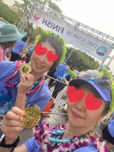 毎年12月の第二日曜日に開催されるホノルルマラソン。今年は42,000人(うち日本人12,000人)の過去最高のランナーがエントリーしました。前日の土曜日にはカラカウア・メリーマイルという1マイルの楽しいラン&ウォークも開催されます。小さなお子さんを連れて家族で参加して嬉しそうにメダルをもらうファミリーがたくさんいらっしゃいました。そして日曜日の早朝、波打つような雨の中、スタートの5時に小降りになり盛大な花火が上がり気分は最高潮!私は初めて10Kでの参加、できる限り頑張って走り暗いうちにゴール。フィニッシュした後にもらった揚げたてのマラサダおいしかった~♪